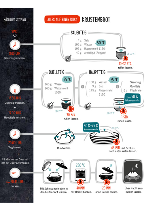 Bestsellerautor Lutz Geißler und die brotbackbegeisterte Designerin Sandra Weihe haben für dieses Buch ein Konzept entwickelt, mit dem wirklich jeder im Alltag sicher zum perfekten eigenen Brot kommt. Kreiert wurden dafür Rezepte, die vom Zeitplan auch in einem normalen Familienalltag umsetzbar sind. Mit präzisen Stepfotos sind alle Handgriffe problemlos nachzumachen. Eine übersichtlich illustrierte Tafel hilft darüber hinaus dabei, dass Rezepte später ohne erneutes Lesen wiederholt werden können. Außerdem notwendiges Know-how zum jeweiligen Rezept wird in kleinen, schnell erfassbaren Grafiken mitgeliefert.